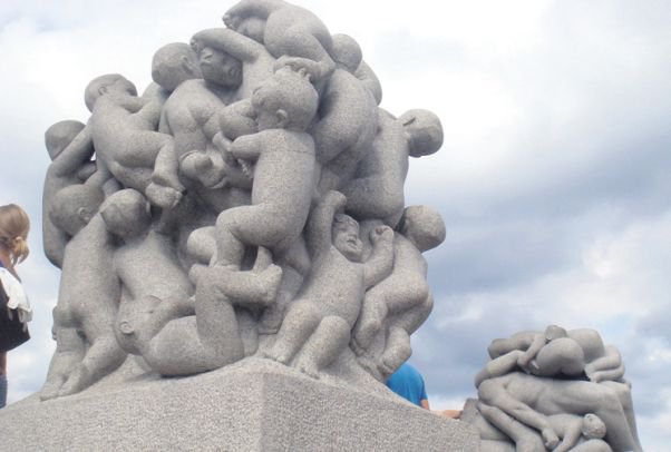 Pentru turiștii care nu provin din nordul Europei, mesajele statuilor care împodobesc parcurile din Oslo sunt mai mult decât bizare: bărbați care se consolează reciproc, ținându-se în brațe, copii încălecați unul în capul celuilalt, femei aplecate una asu